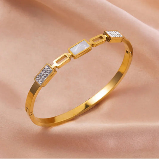 Stainless Steel Gold Plated Mother of Pearls Geometric Anti-Tarnish Bracelet For Women