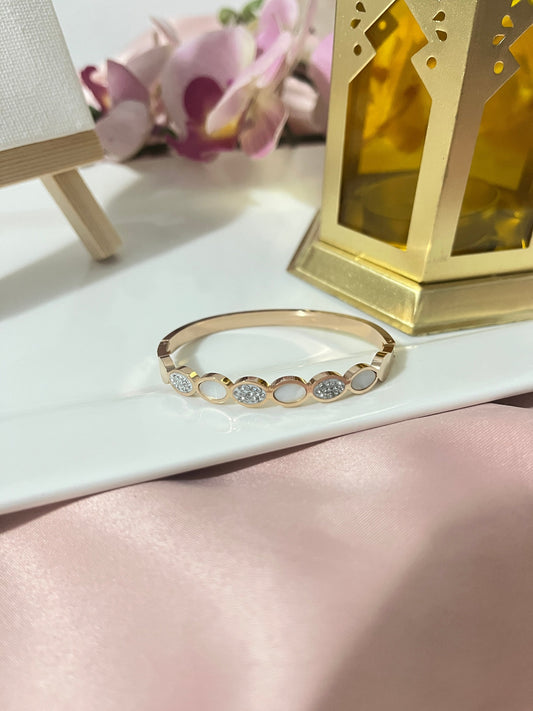 • Stainless Steel Gold Plated Mother of Pearls Geometric Anti-Tarnish Bracelet For Women - ELL DESIGNS