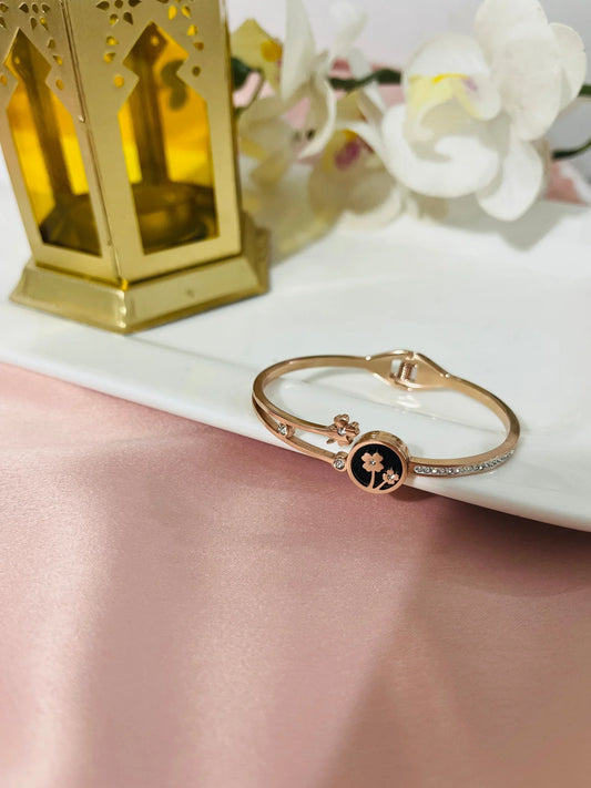 • Stainless Steel Gold Plated Mother of Pearls Dual Flower Openable Floral Anti-Tarnish Bracelet For Women